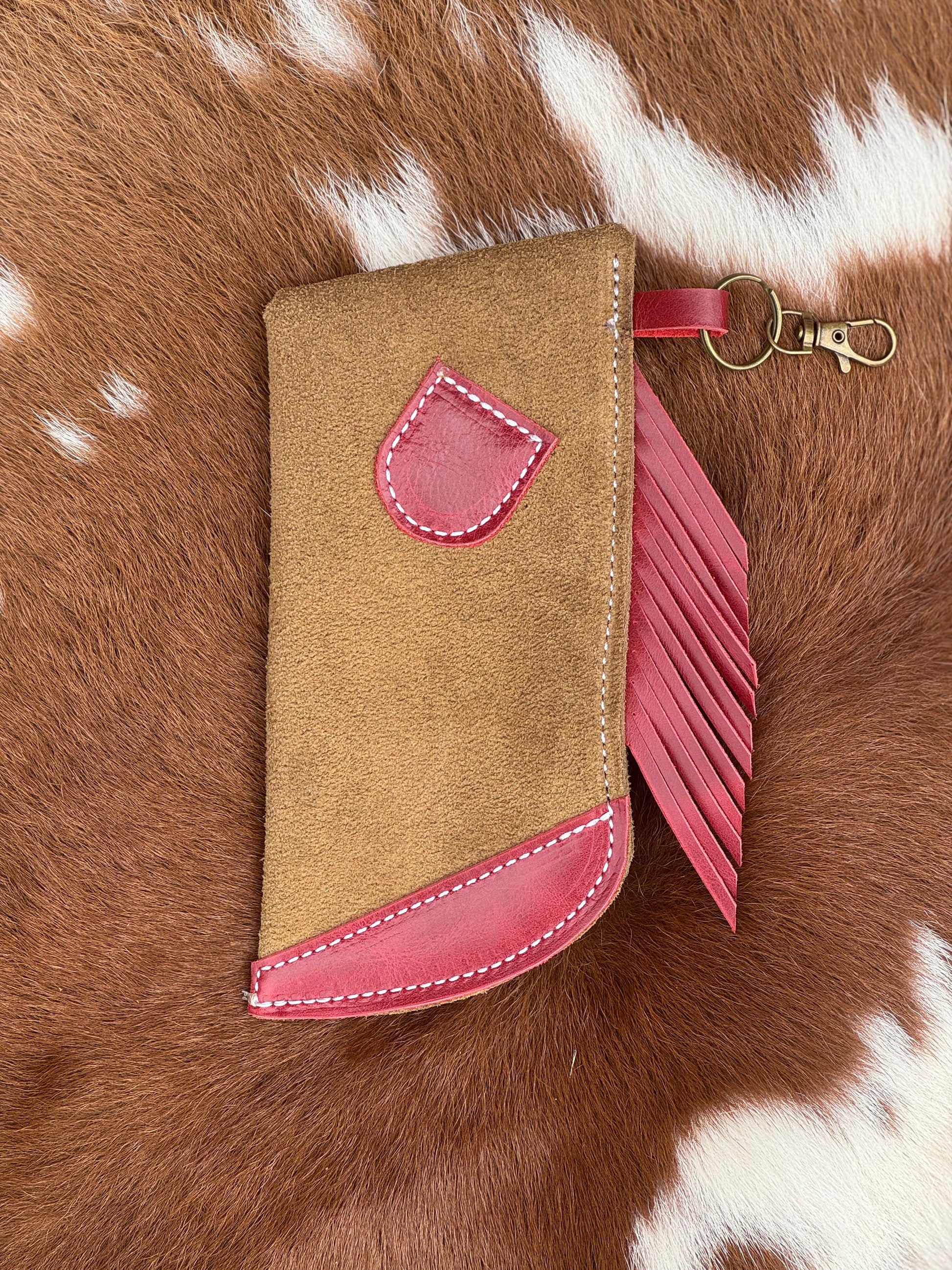 These “chap” stick sunglass holders are going to keep your chapstick and sunglasses together while you’re on the go, working, or at a stockshow/rodeo! They measure approximately 7 inches by 3.5 inches. Made to fit larger aviator glasses and below. Each chapstick holder is handmade by yours truly in the panhandle of Texas with various colors of leather. Leather is a natural product, and each hide has imperfections and markings that make them beautiful and unique. So no two are alike. Slick on rough out leather texture.