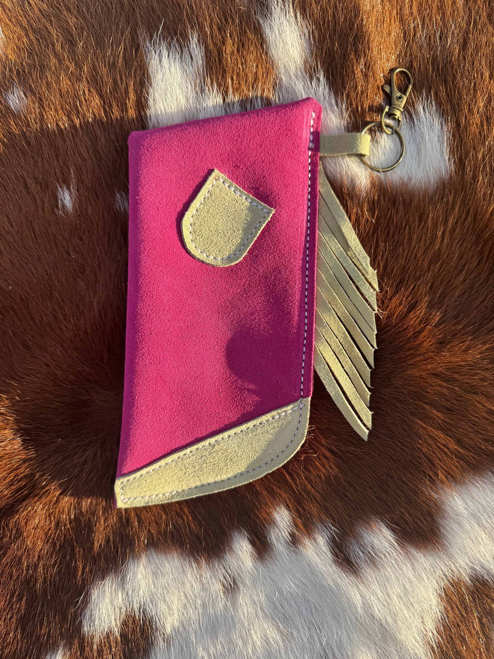 These “chap” stick sunglass holders are going to keep your chapstick and sunglasses together while you’re on the go, working, or at a stockshow/rodeo! They measure approximately 7 inches by 3.5 inches. Made to fit larger aviator glasses and below. Each chapstick holder is handmade by yours truly in the panhandle of Texas with various colors of leather. Leather is a natural product, and each hide has imperfections and markings that make them beautiful and unique. So no two are alike. Rough out on rough out leather texture.