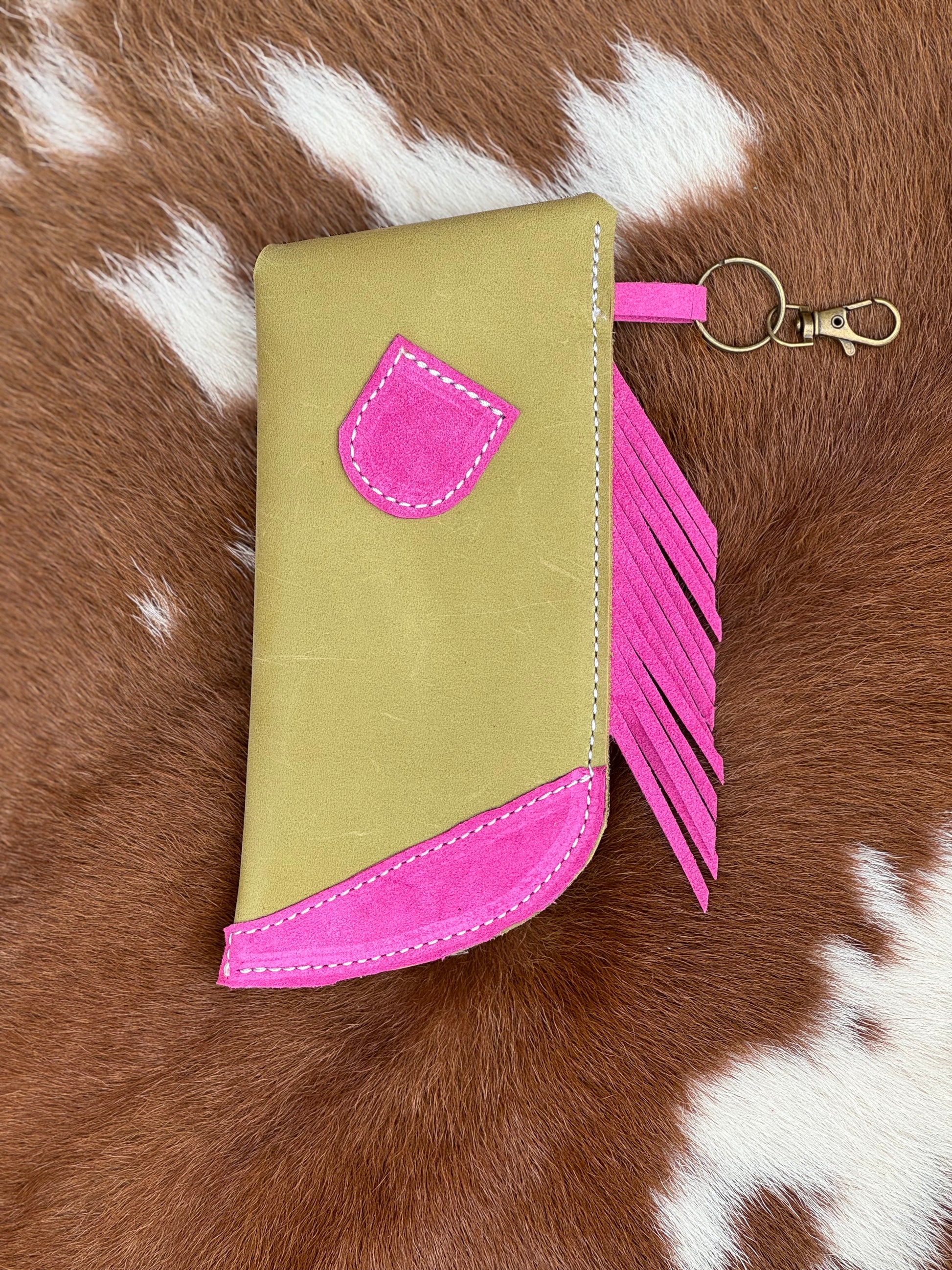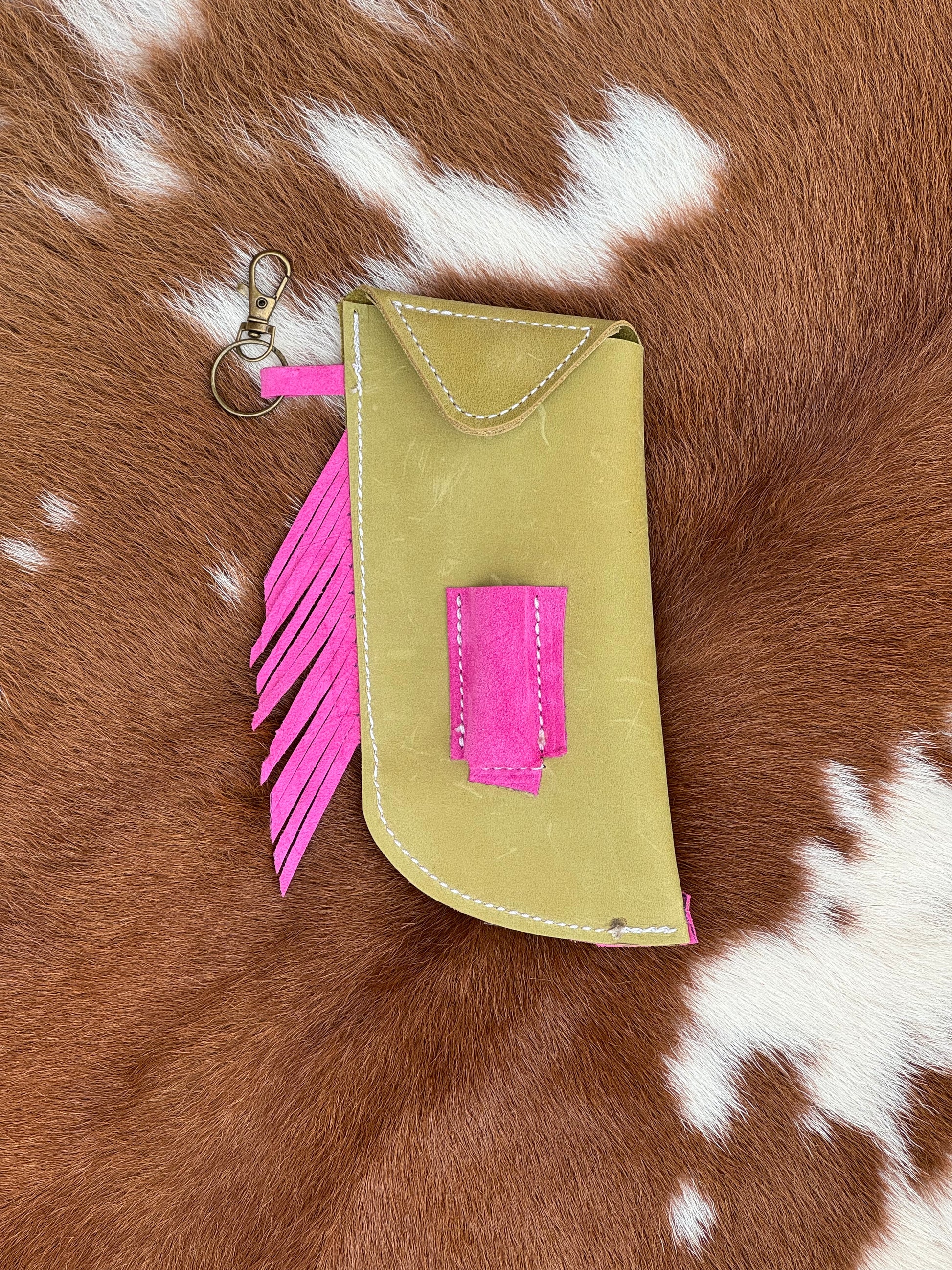 These “chap” stick sunglass holders are going to keep your chapstick and sunglasses together while you’re on the go, working, or at a stockshow/rodeo! They measure approximately 7 inches by 3.5 inches. Made to fit larger aviator glasses and below. Each chapstick holder is handmade by yours truly in the panhandle of Texas with various colors of leather. Leather is a natural product, and each hide has imperfections and markings that make them beautiful and unique. So no two are alike. Rough out on slick leather texture.